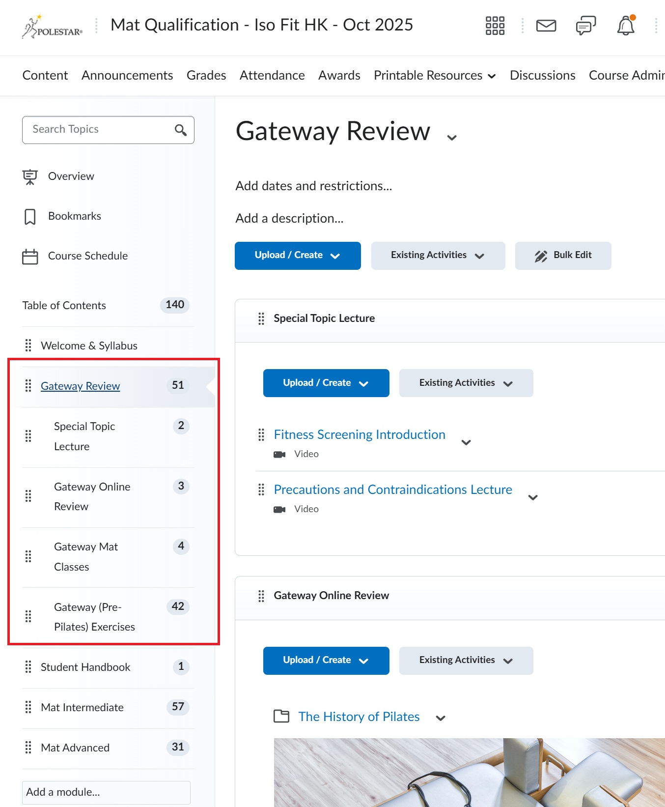 Article Summary: If you've already completed the Gateway course and now see a "Gateway Review" section in your Mat, Reformer or Comprehensice Qualification course, don't worry—you don't need to complete it again. This article explains what the Gateway Review section is, why it appears in your qualification course, and how to proceed with your actual qualification coursework.